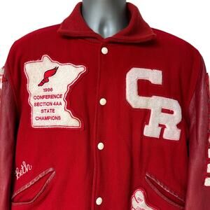 Vintage Letterman Jacket Cardinals Red White Beth Cross Country Coat Women's Size XL