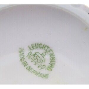 You are buying a sugar and creamer set by Leuchtenburg in iridescent lusterware. All pieces are in good condition with a small chip on the inside edge of the creamer.