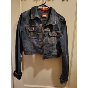 Vintage Level 99 Jacket Women's Large Blue Full Zip Jean Cropped Pockets Stretch