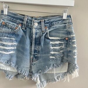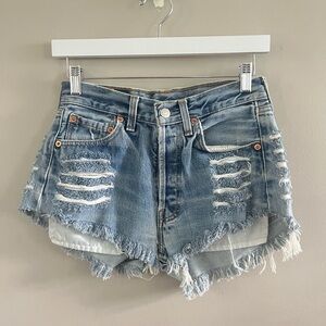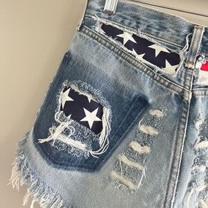 Vintage Levi 501 Cut Off Denim Shorts Distressed American Flag USA -