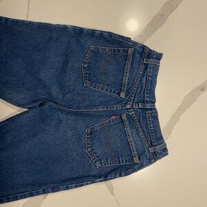 I thrifted these at a vintage jean warehouse; they appear to have been altered on the ends of the pants legs.