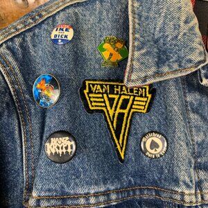 Vintage Levi's 46 Jean Denim Trucker Jacket 80's Band Patches Pins