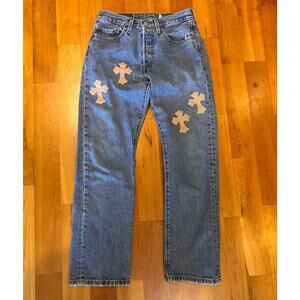Vintage Levi's 501 " Chrome Hearts " patchwork crosses womens jeans 2000s 00s