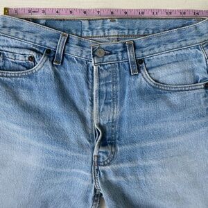 This is a soft and sought-after pair of 90's vintage Levi's 501 jeans, in light blue wash, buttery soft, made in USA.