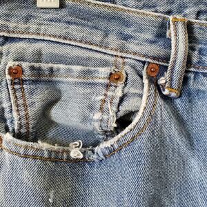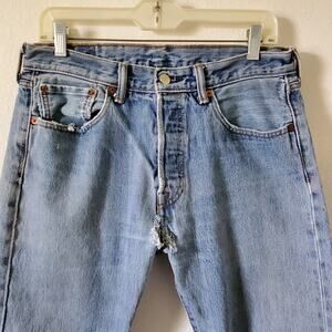 Vintage Thrashed Levis 501 Mens Jeans 32x32 Faded Blue Denim Ripped Unisex