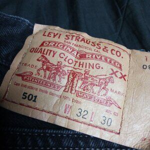 Vintage Levi's 501 Preshrunk Button Fly Black Denim Jeans 32x30 - February 2001 - Size W32 L30, Measures Waist(Flat)=15" Inseam=29" Front Rise=11" - Excellent Condition, No Flaws - Black Color Denim