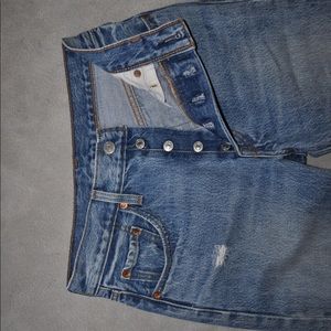 Vintage Levis 501 Straight Leg High Wasted Distressed Denim Jeans