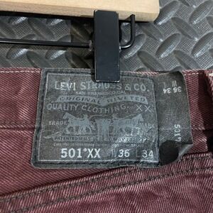 Vintage Levi's 501 XX Jeans Mens 36x34 Maroon Red Straight Fit Button Fly Denim