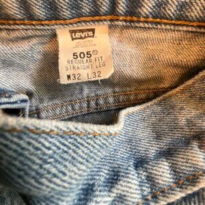Classic Levi's 505 jeans in a 32x32 regular fit. Vintage straight leg design, made in the USA. A timeless piece of Americana fashion, perfect for casual wear.