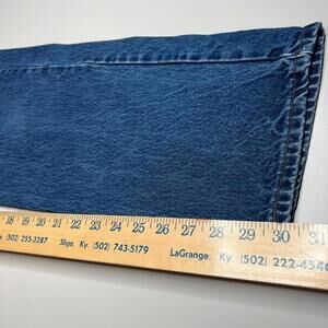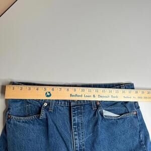 Classic 1990s Levi’s 505 jeans with orange tab, made in USA. 100% cotton, zipper fly. Tagged W38 L30 but fits closer to 36x30 (see actual measurements). Code indicates production in 1993.