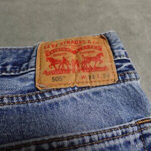 Vintage Levi's 505 Pants Men's W36 L 34 Denim Blue Ankle Flat Front Distressed
