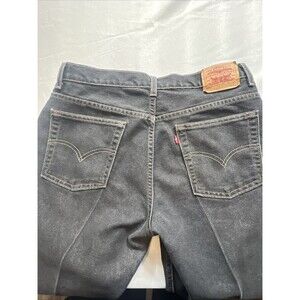 The product is a pair of vintage Levi's 515 Bootcut Lower Rise women's jeans in size 14. These black jeans feature a mid-rise fit with a 29.5-inch inseam and a 5-pocket design. Made from a dark denim fabric with a cotton blend material, they have a zip and button closure, as well as Levi's logo accents. The jeans are part of the Levi's 500 Series product line and are machine washable, making them a versatile and stylish choice for any season.