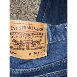 The Vintage Levi's 517 Jeans in men's size 40x28 are a stylish and classic addition to any wardrobe. Made in the USA in June 1997, these blue denim jeans feature the iconic orange tab and Levi's brand. The straight fit and dark wash give them a timeless look perfect for the grunge, cowboy, and 90s themes. With a mid-rise and button closure, these Levi's 517 jeans offer a comfortable and on-trend option for everyday wear.