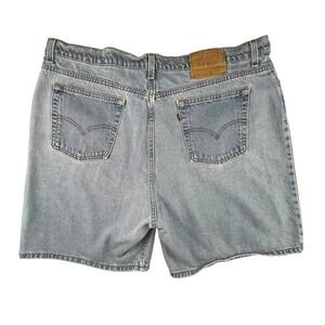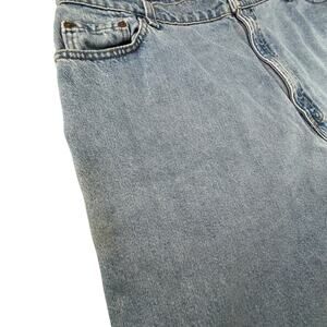 Vintage Levi’s model 522 tapered fit women’s jean shorts, tagged size 24. Made in the USA, dated December 1995. Light wash with blank red tab on back pocket. Zipper fly. Good condition with some light spots and light age, no major flaws. Waist approximately 41.5", length approximately 20", 14" width at bottom of legs.