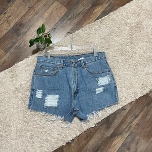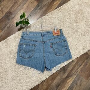 Vintage Levi's 550 32" Cut Off Distressed High Waisted Frayed Shorts