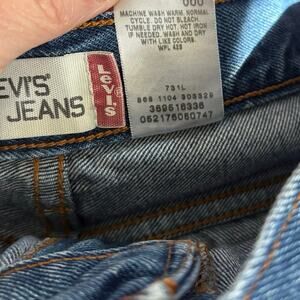 Vintage Levi’s 550 denim shorts. Zipper fly. Size 16. Preowned, no flaws. Waist: 17” Inseam: 6.5” Rise: 11.5”