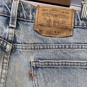 Vintage Levis 550 Denim Shorts Mens 38 Orange Tabs Self Hemmed Relaxed Fit