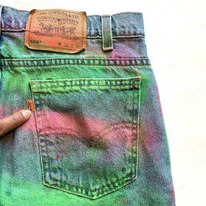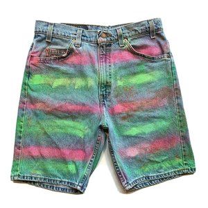 Vintage Levi's 550 Jean Denim Shorts Men 32 (31) USA Orange Tab Painted Altered