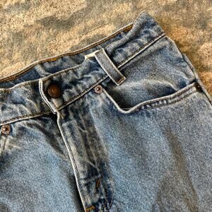 Vintage Levi's 550 Relaxed Fit Slim Orange Tab Jeans. Unisex girl or boy size 10. Medium wash denim pants. Orange tab on back pocket. Perfectly broken in. A wardrobe staple! See photos for measurements.