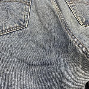 Condition: Pre-owned vintage pair with authentic wear. Distressed fade, small hole on left leg, light marks near hem, and overall signs of use that add to the vintage look (see photos). Sturdy and ready to wear.
