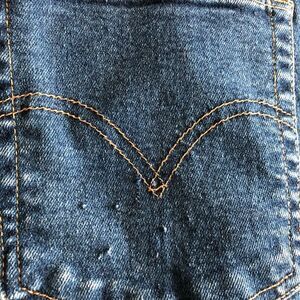 Excellent condition high rise (12”) vintage Levi’s 550 relaxed fit with tapered leg. Inseam is 30”. It fits more like a 10 has a very stretchy waist. Some wear on the back pocket, see picture. Very slimming with the high waist and tapered legs.
