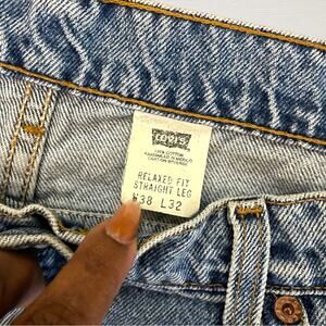 Levi's 553 • Relaxed Fit Straight Leg Jeans • Color: Light Wash • Size: 38x32* (*Please see the measurements; the actual measurement is 30") • Five pocket detail • Zip fly and button closure • Made in Mexico in June 1997 • White tab.