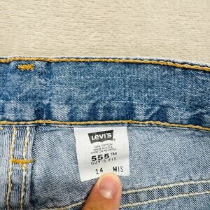 For sale is a: Vintage Levis 555 Shorts Womens 14 Medium Wash Blue Denim Guy Fit Made in USA