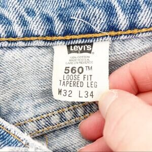 Vintage Levi’s 560 high rise mom jeans. Loose fit tapered leg. Some wear to the crotch area