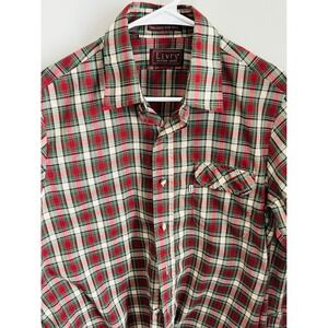 Keywords: Levi's shirt, plaid shirt, flannel shirt, men's shirt, button down shirt, casual shirt, red plaid, green plaid, medium shirt, vintage Levi's, tailored shirt, action shirt, cotton blend shirt, long sleeve shirt