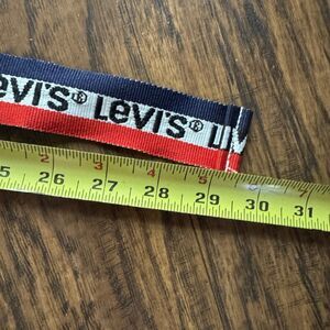 Vintage Levi's Belt Red White Blue Logo Striped Adjustable Fabric D Ring