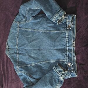 Timeless denim jacket with button closure. Features chest pockets and adjustable cuffs. Perfect for everyday style. Light discoloration around collar.. Size 42L