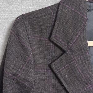 Vintage Levis Blazer S Gray Purple Plaid Wool Blend Elbow Patch Preppy 90s y2k