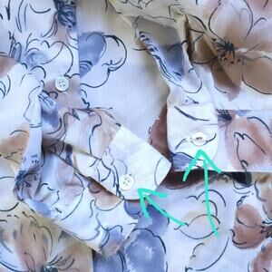 FLAW: One of the buttons has been replaced on the sleeve cuff. The Shirt has pearly buttons, and the replacement is also a pearly button, but it's a bit different