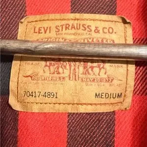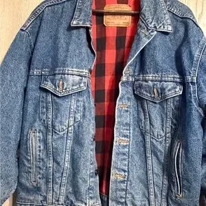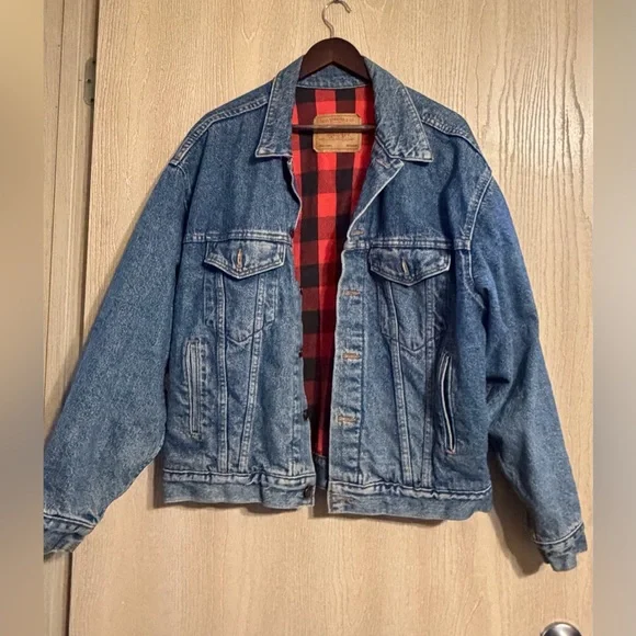Vintage Levi’s Buffalo Plaid Lined Denim Trucker Jacket – Medium – Made in USA