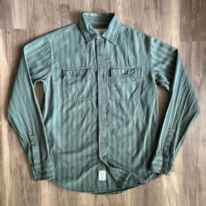 Vintage Levi's Button Down Shirt Men's Size S Striped Cotton Green Pearl Snap