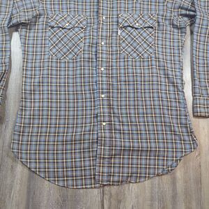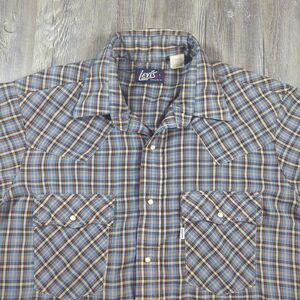 Vintage Levis Button Shirt Men's Large Plaid Pearl Snap Western Retro Blue Tag