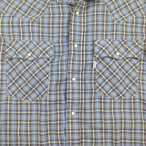 Vintage Levi's Button Shirt Men's Large Plaid Pearl Snap Western Retro Blue Tag