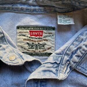 Vintage Levi’s Denim Button-Up Shirt Light Wash Long Sleeve XL 90s Denim
