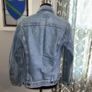 This jacket has a beautiful fade! Please review measurements for sizing, as the tags are very well worn.