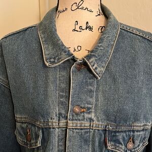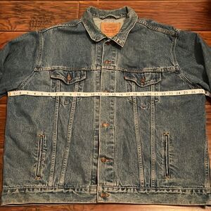 Vintage Levi’s Distressed Denim Jacket, button closure, size XXL. Vintage sizing; refer to approximate measurements.