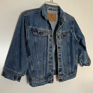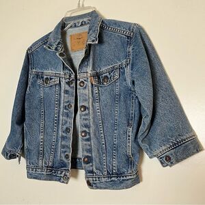Vintage Little Levi’s Kids 7 7X Trucker Jacket Blue Denim Jean Orange Tab MADE IN USA
