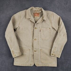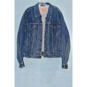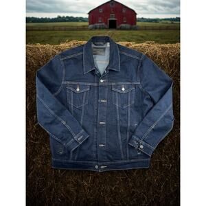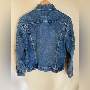 Vintage denim jacket with classic stitching. Features branded button. Size is a 38.
