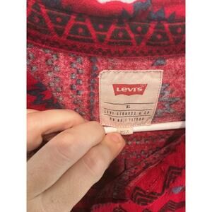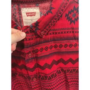 Vintage Levis Mens Flannel Button Up Shirt Button Down Red Aztec Size XL Western