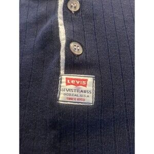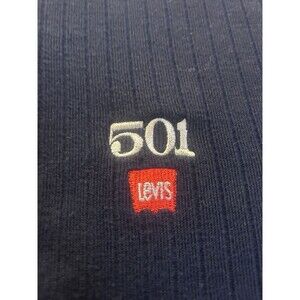 Vintage mens Levis polo. Embroidered 501 Levis logo. Navy blue with gray collar. Ribbed. Short sleeve shirt