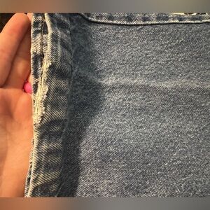 The bottom of the jeans have rips and wear. These can always be rolled up or hemmed. Other than the bottoms there isn’t any major flaws. There is wash wear and fading due to age and wear. Please see all pictures for condition. Cannot see the size tag so check measurements to make sure it will work for you.