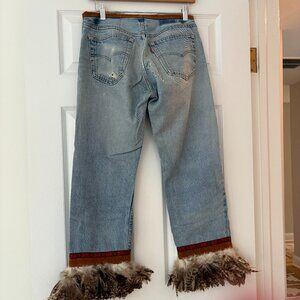 Levi's, low rise, loose, sexy fit with feather detail on the bottom. Truly one-of-a-kind!