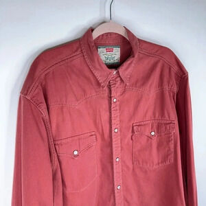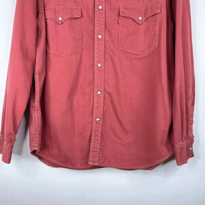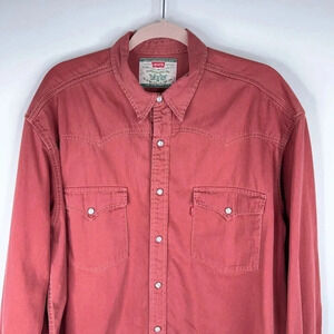 Vintage Levi's Pearl Snap Western Button Up Shirt Red Long Sleeve 90s Size XL