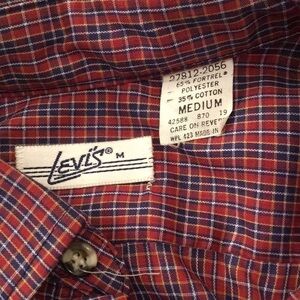 Vintage Levis Plaid Long Sleeve Single Stitch Button Front Shirt Men's Medium.