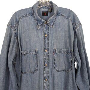 Vintage Levi’s Red Tab Denim Shirt Men’s L Distressed Button Front Long Sleeve