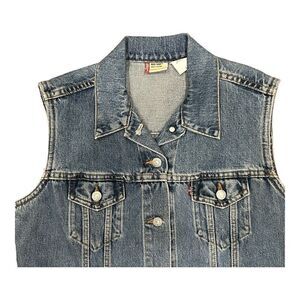 The vest is perfect for those who love the motorcycle or 80s theme, as it embodies both. The vest's fabric type is denim, making it perfect for any casual occasion. The brand is Levi's, a well-known and respected name in the fashion industry. This pre-owned vest is in excellent condition and ready for a new owner.